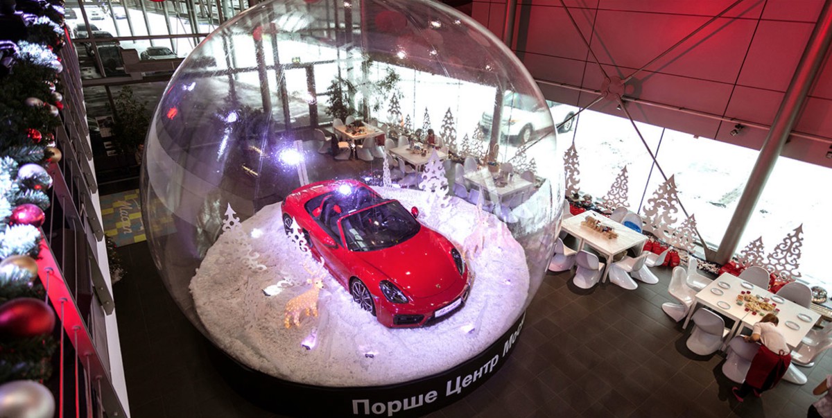 Transformation of Porsche autocentre into a large Christmas toys factory